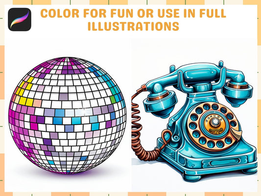 200+ Procreate Retro Items Themed Stamps Instant Download