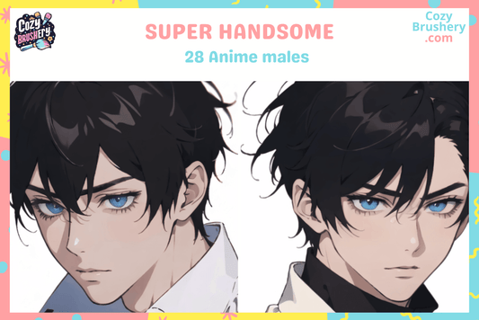 Anime Guy Procreate Stamp Brushes Bundle - Male Face Stamps
