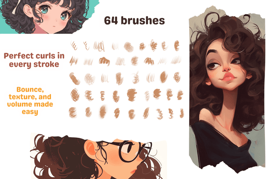 Curly Hair Brushes – 64 Procreate Brushes for Textured Curls