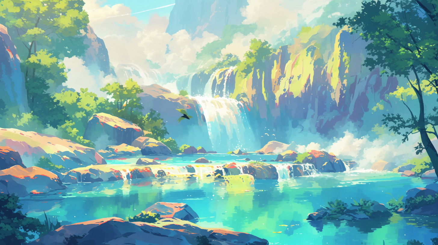 This comprehensive collection helps artists design stunning scenes featuring elements like detailed rocks, vibrant water, dynamic clouds, and lush greenery, enhancing creativity and realism.